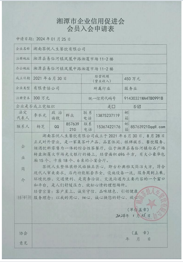 湖南茶悅?cè)松惋嬘邢薰?024年度信用報(bào)告 2024 已發(fā)布