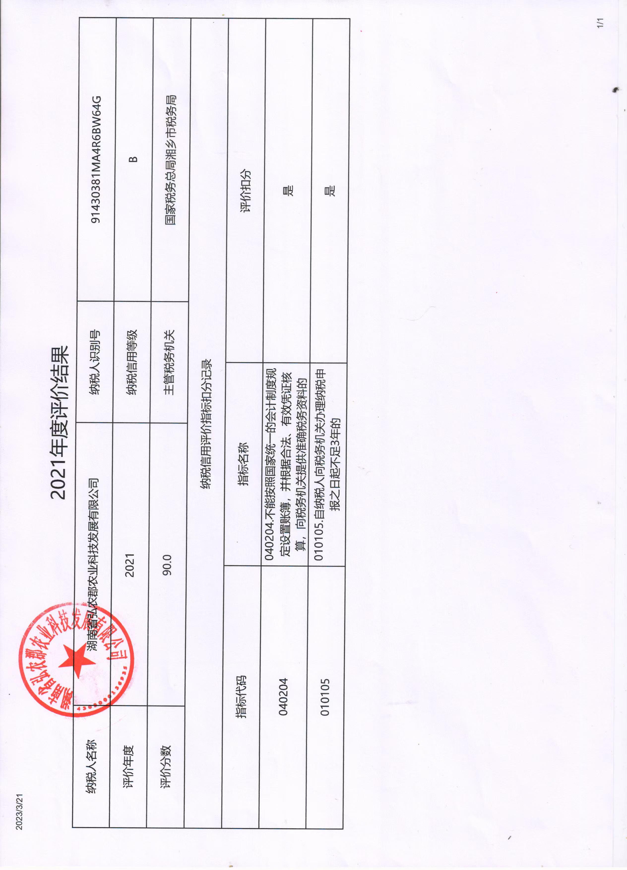 企業(yè)納稅信用等級報(bào)告: