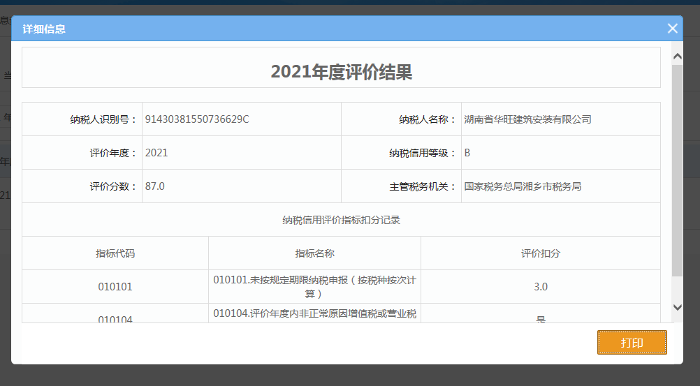 企業(yè)納稅信用等級報告: