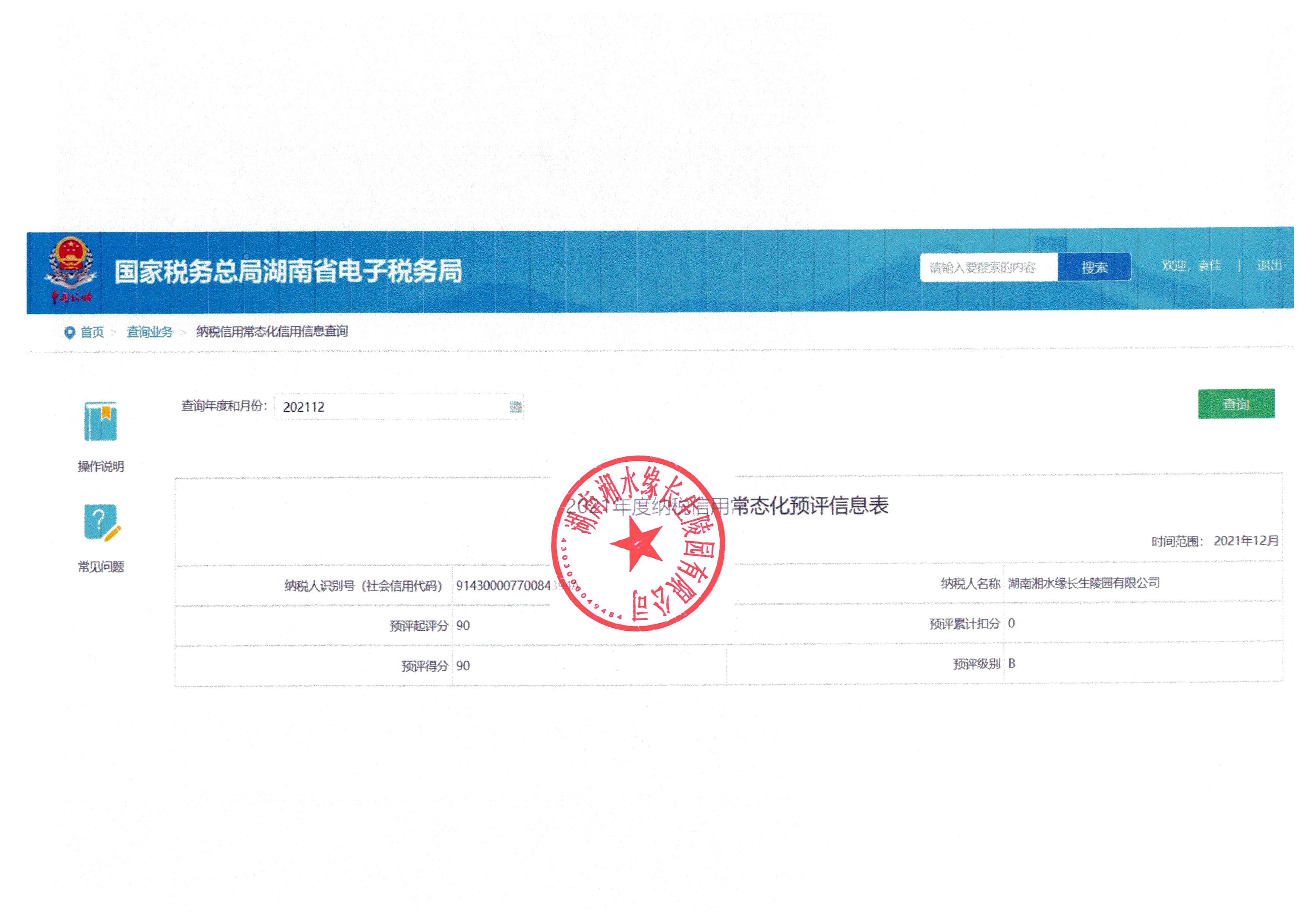 企業(yè)納稅信用等級報告: